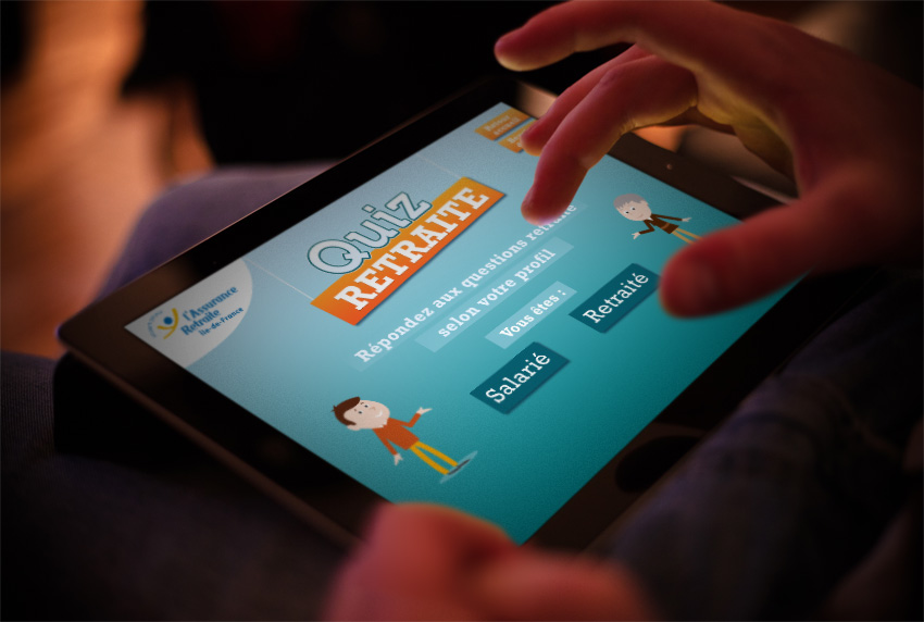 Création graphique d'un quiz sur tablettes, permettant aux assurés de se renseigner sur leur retraite.